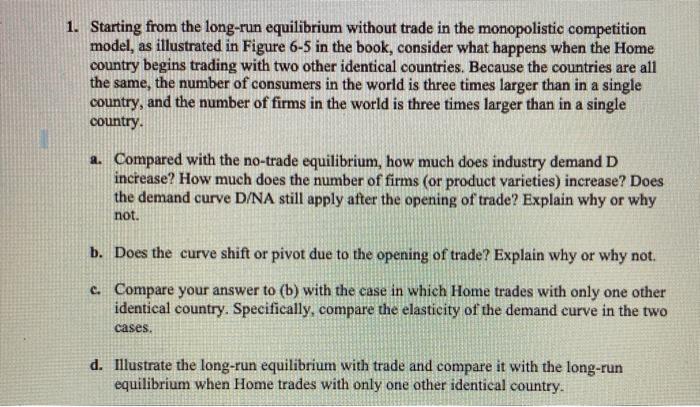 Solved Starting From The Long Run Equilibrium Without Trade Chegg Com